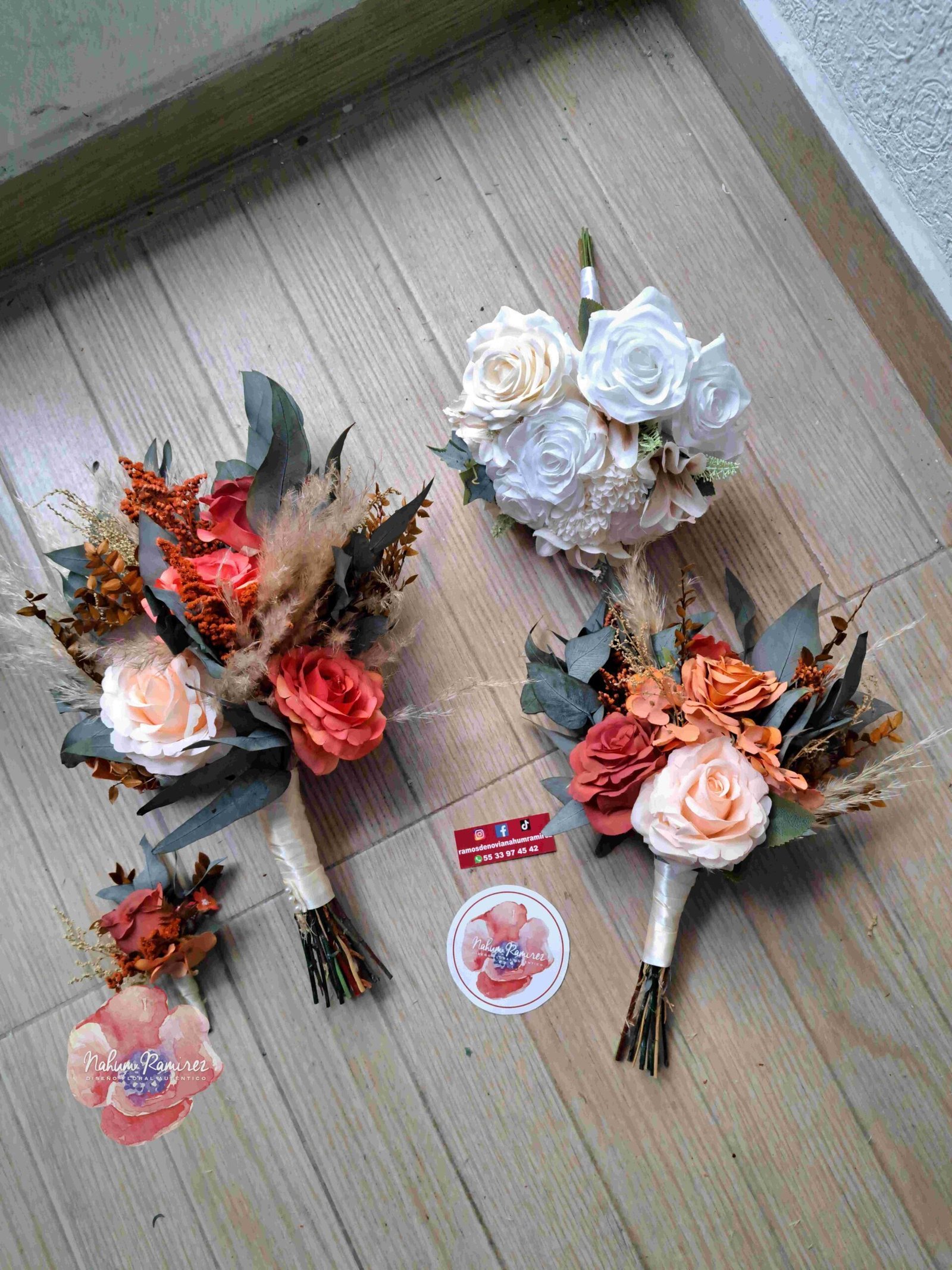 hermoso paquete de ramos de novia artificial que incluye ramo principal, ramo de aventar, ramo de la virgen y bottoniere