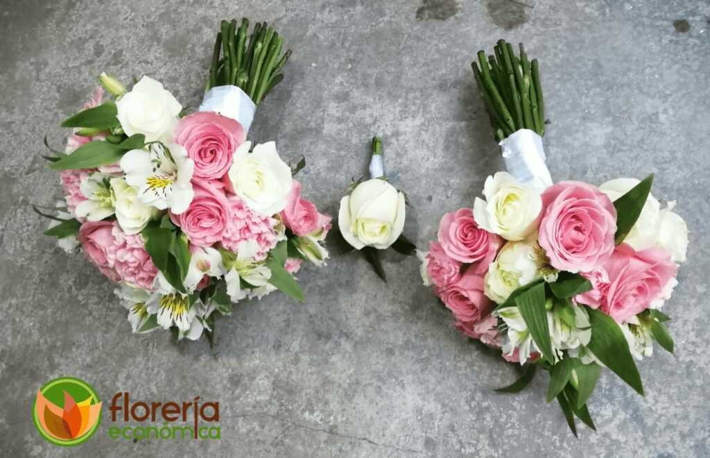 Paquete con ramos de novia, con ramo principal, ramo de aventar y bottoniere. Envío NO incluído a toda CDMX y Área Metroplitana.