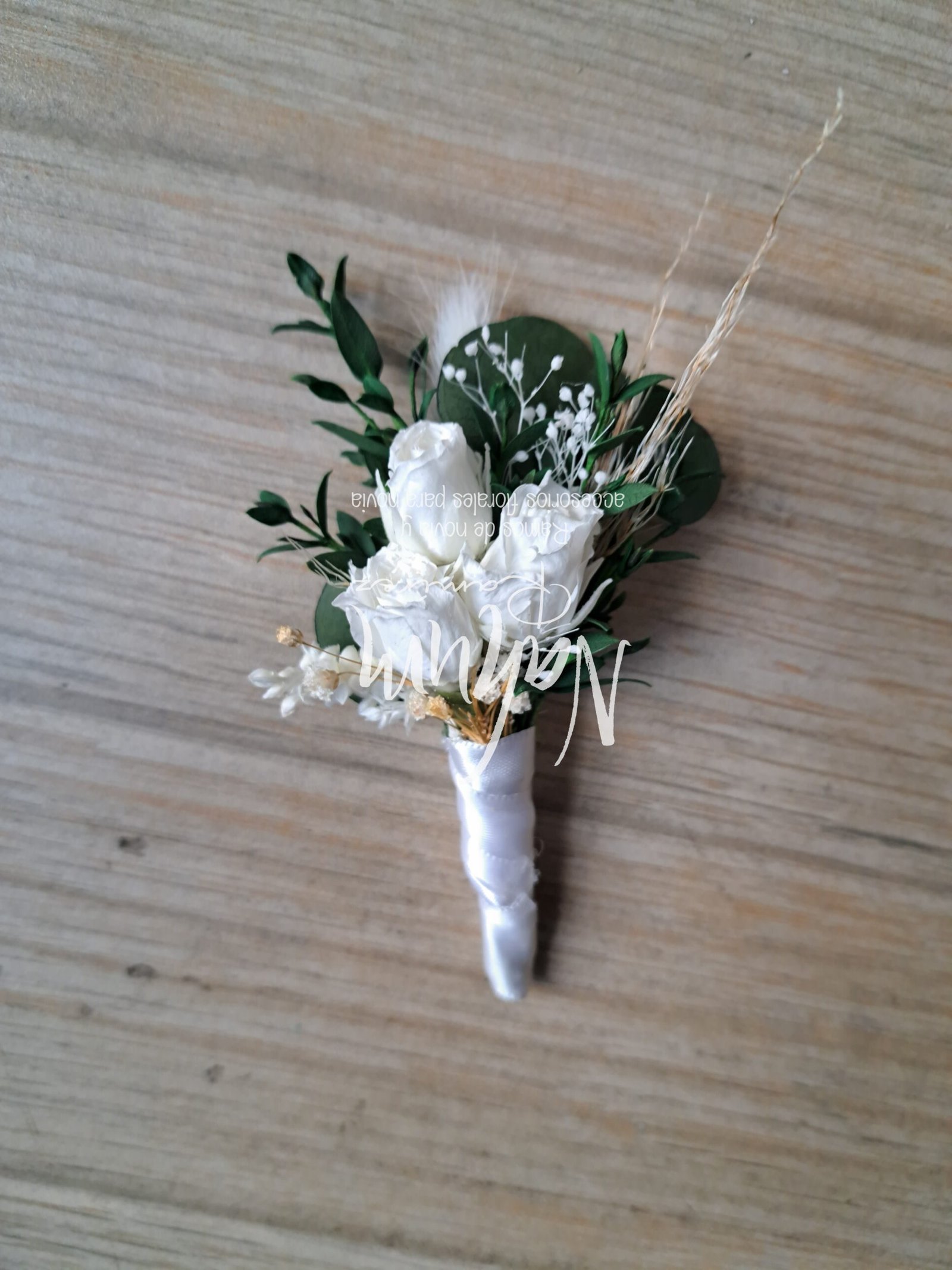 Paquete de ramos de novia con ramo principal preservado con ramo de aventar artificial y bottoniere preservado