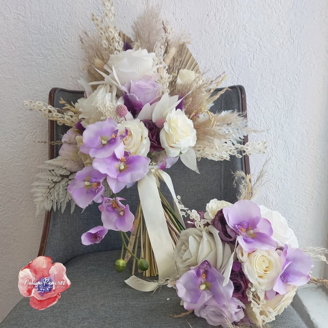 Ramo principal artificial con follaje rehidratado, ramo redondo para aventar y bottoniere. Hacemos envíos a toda la República.