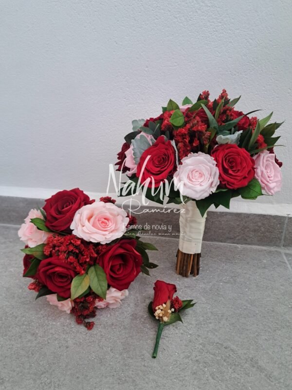 Paquete de ramos de novia. Principal en preservado, aventar artificial y bottoniere preservado. Envíos a toda la República Mexicana