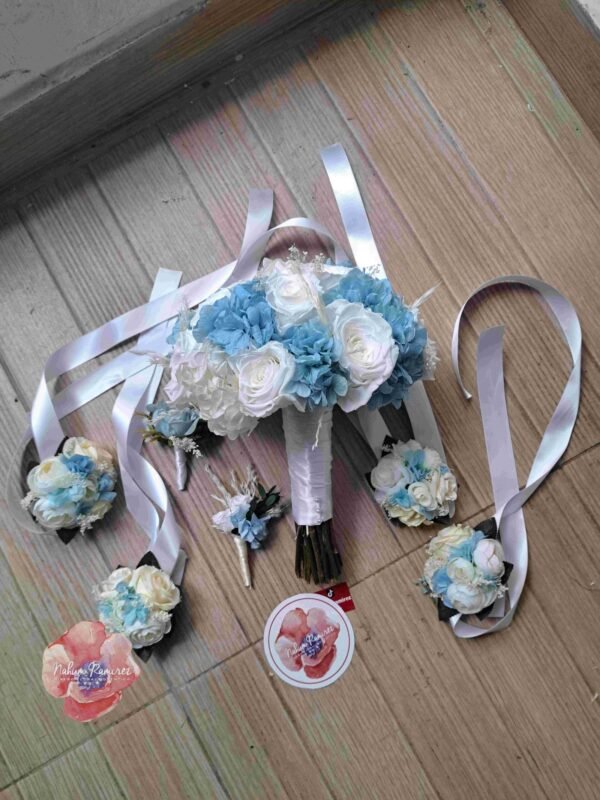 Paquete preservado azul con corsages y bottoniere