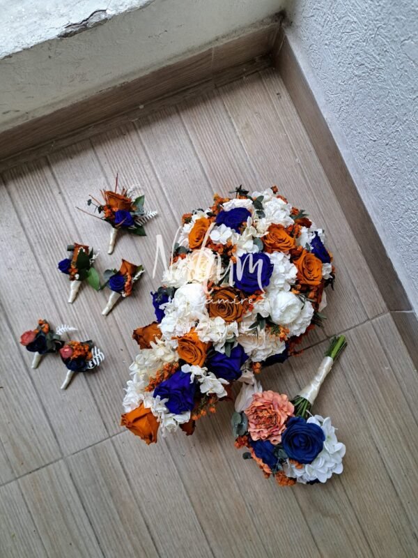Ramo de novia preservado en forma de gota en shedron y azul rey. Enviamos a toda la República