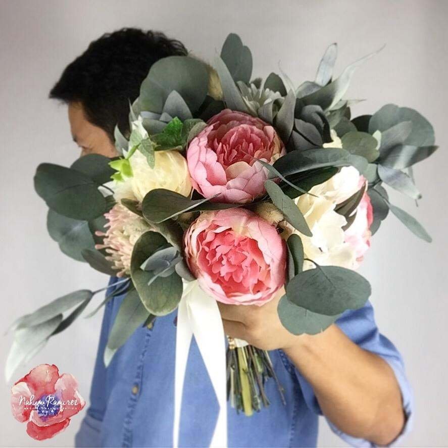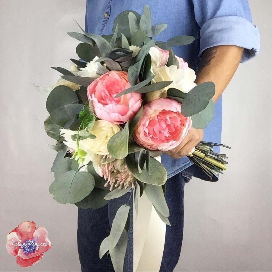 Ramo de novia artificial con peonias rosas