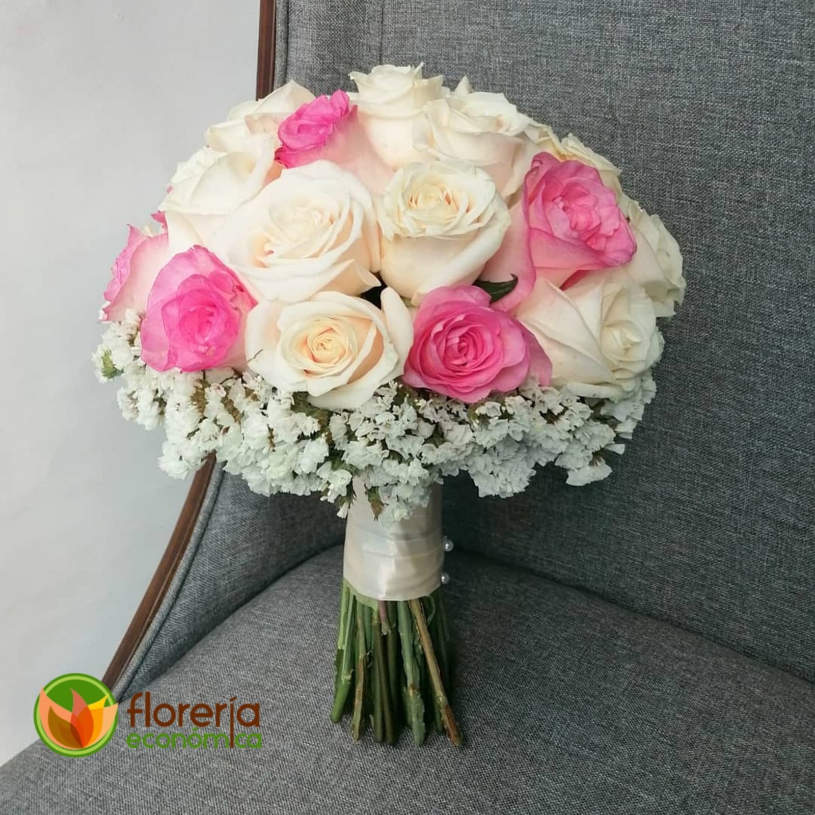 Ramo de novia con rosas y estátice