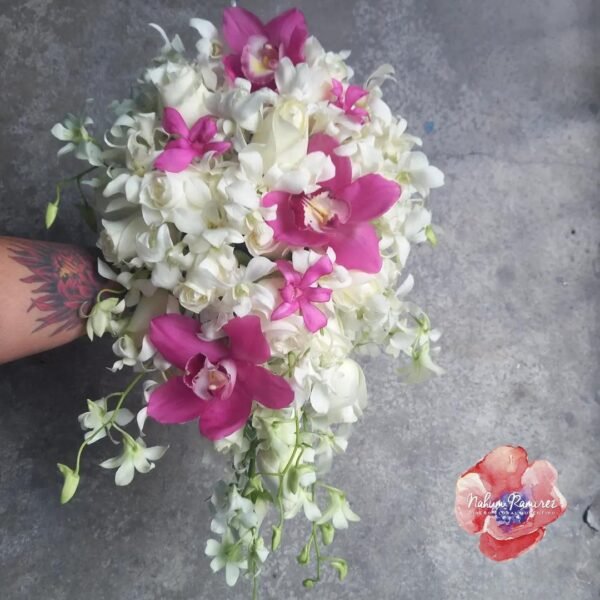 Be the first to review “Ramo de novia natural con orquideas blanco y fucsia”