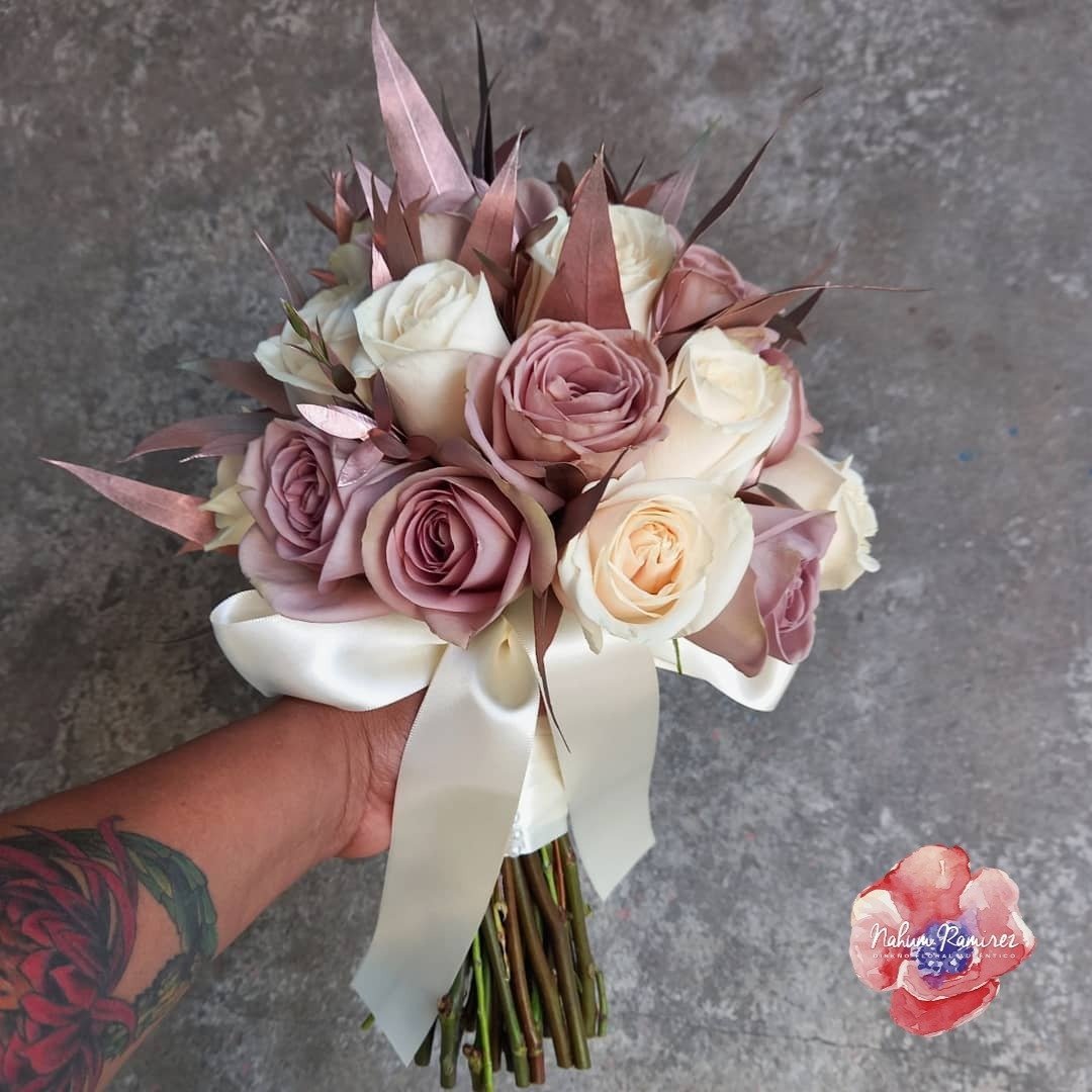 Ramo de novia natural en ivory y rosegold. Pregunta por el paquete con ramo de aventar y ramo de la iglesia.