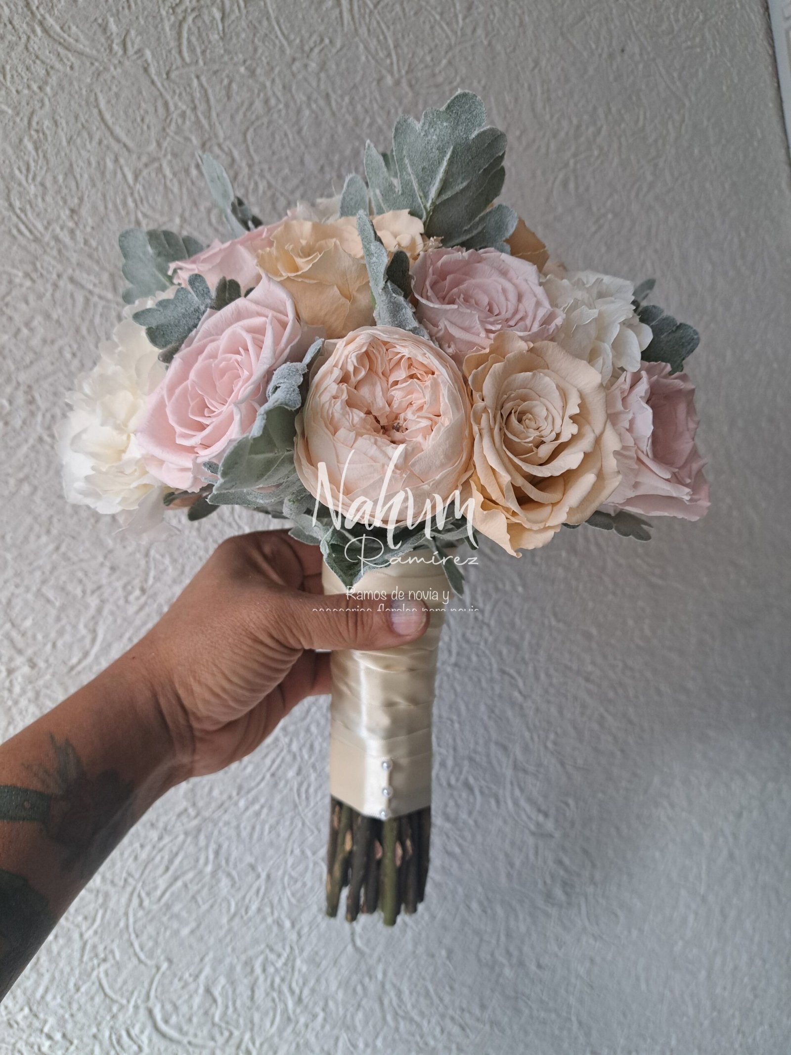 Ramo de novia preservado en rosaq, durazno- Enviamos a toda la República y Estados Unidos.