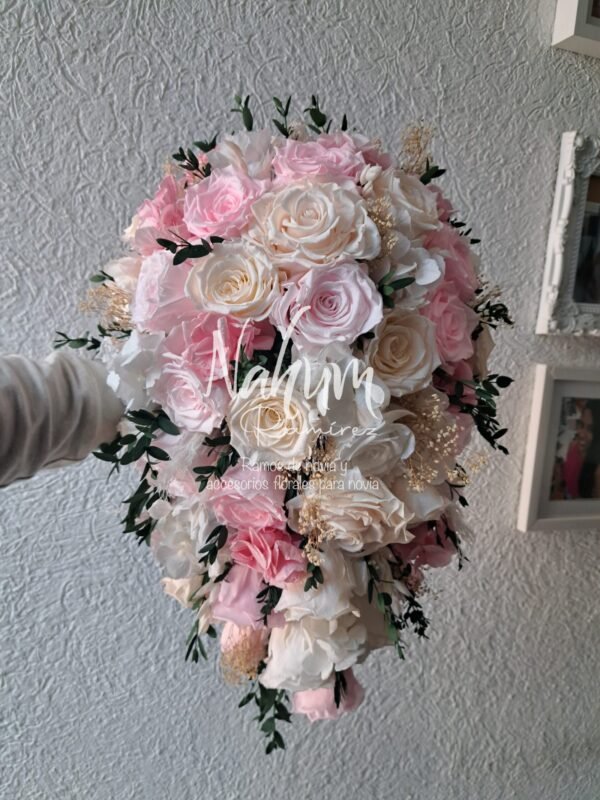 Ramo de novia preservado en forma de gota. Envíos a toda la república y Estados Unidos.