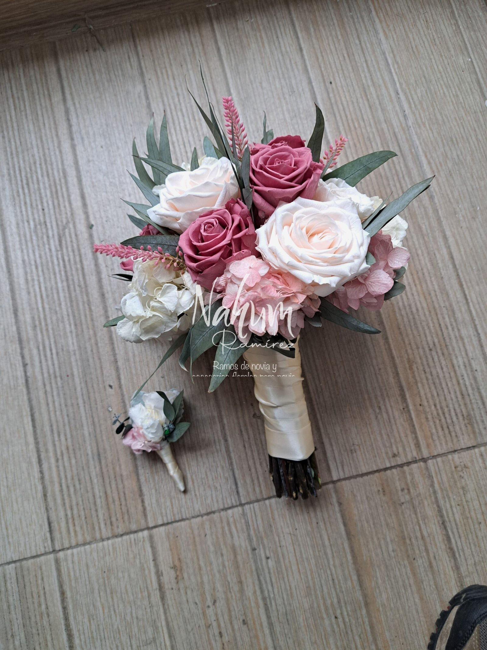 Ramo de novia preservado en palo de rosa con ivory. Envíos a toda la república y Estados Unidos