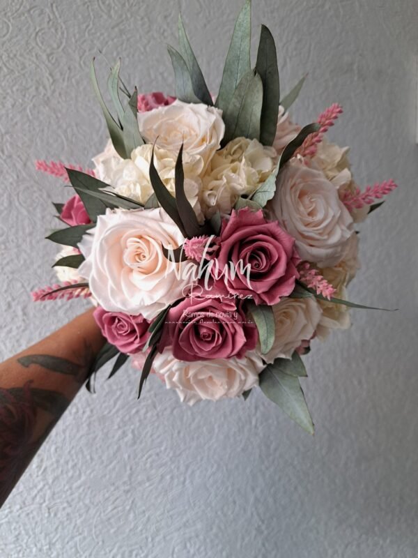 Ramo de novia preservado en palo de rosa con ivory. Envíos a toda la república y Estados Unidos