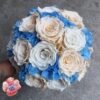 Ramo de novia preservado en tono blanco crudo, ivory y toques de azul cielo. Enviamos a toda la repoública. Incluye bottoniere del novio.