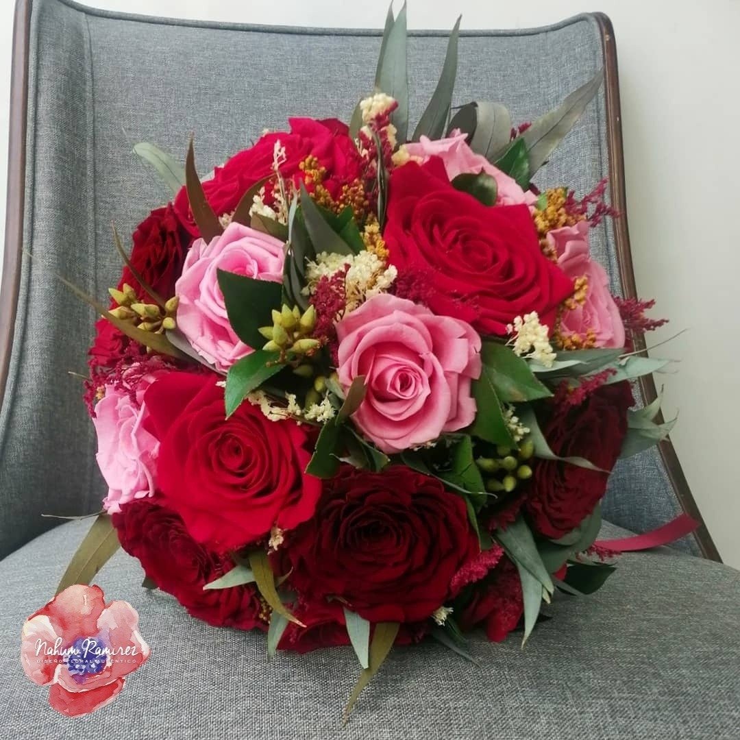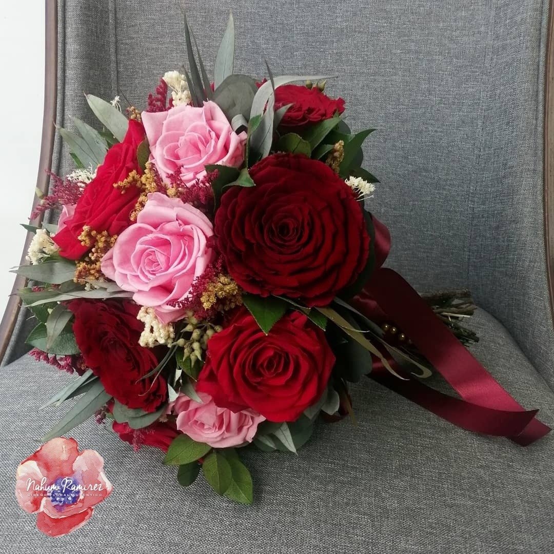 Ramo de novia rehidratado vino, rosa y rojo