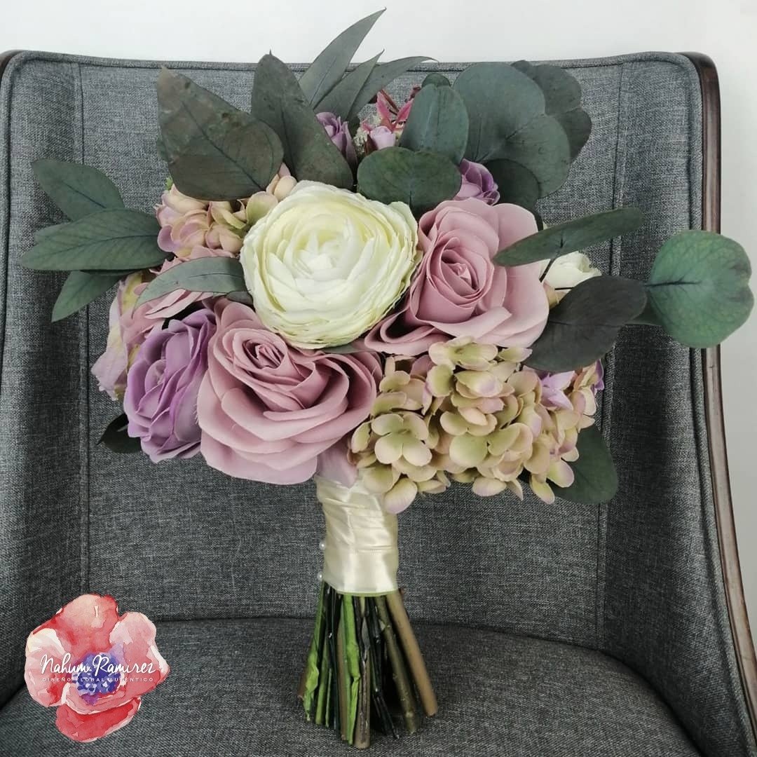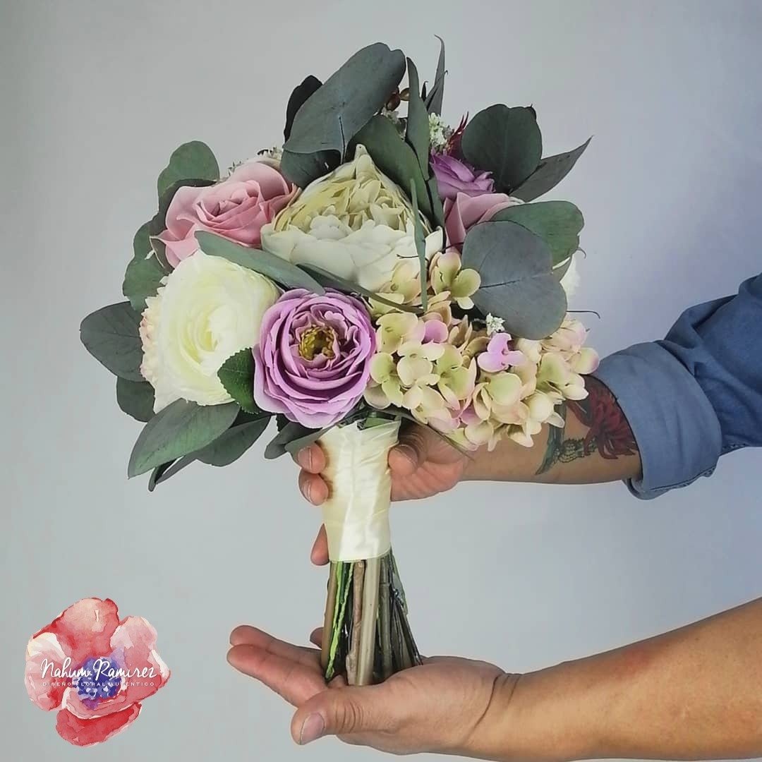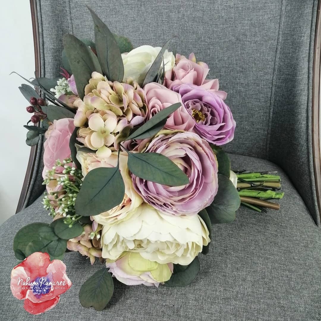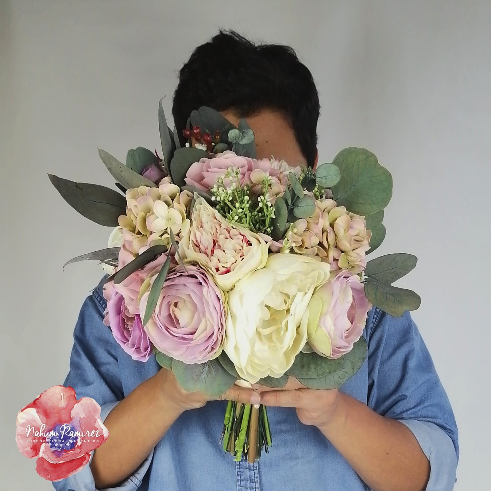 Ramo de novia con peonias blancas, rosa inglesa, rosa vintage. Simplemente hermoso. Lleva follaje rehidratado y hortensia artificial. Lo enviamos a toda la República. Haz tu pedido con antelación.