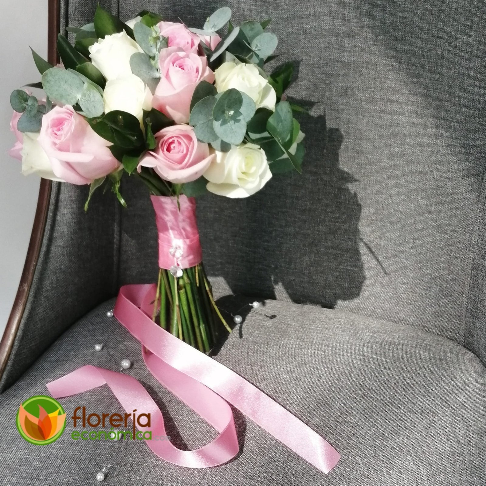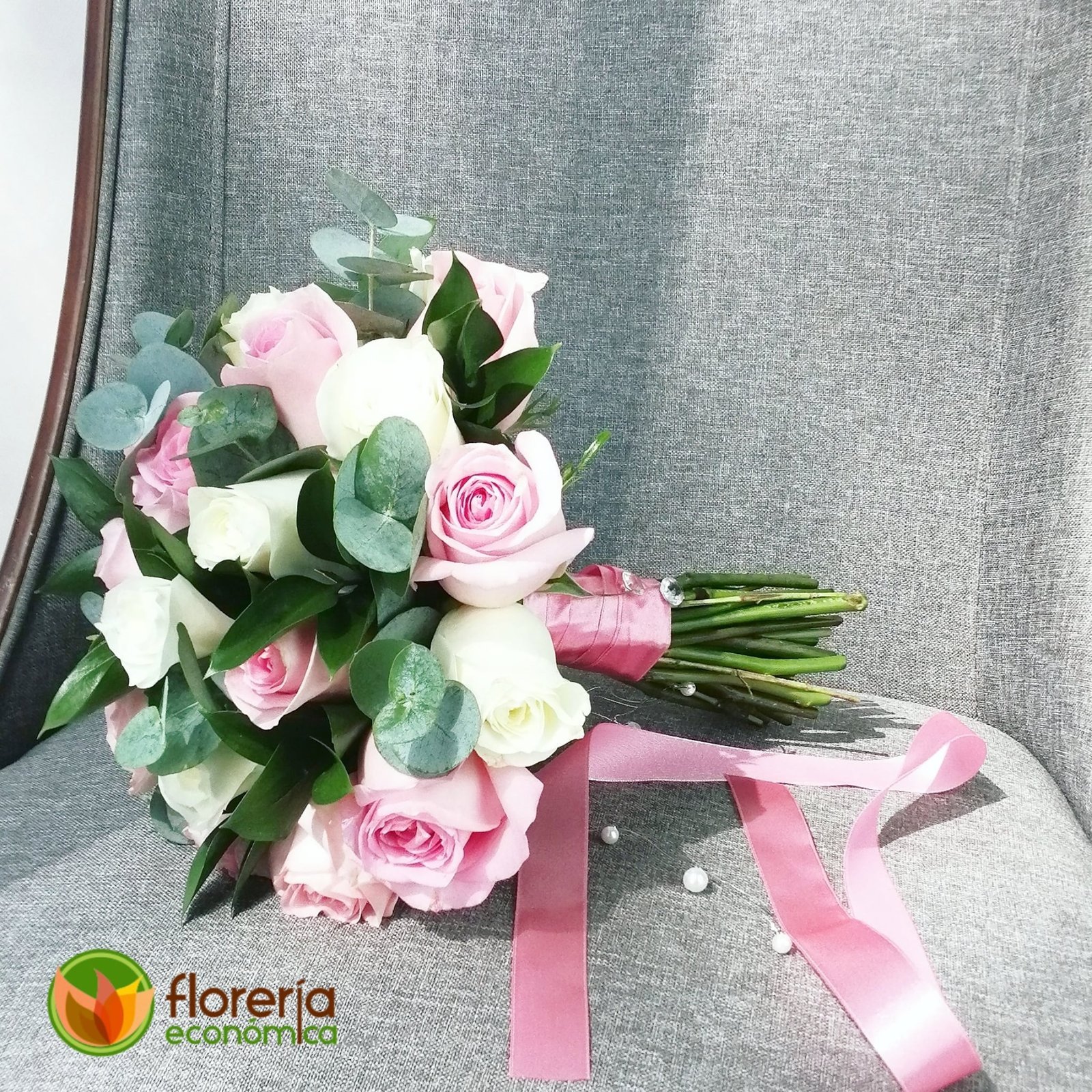 Ramo para novia rosa y blanco con rosas y follaje. Agrégale $300 pesos más y adquiere en paquete con ramo de aventar, ramo de la virgen y bottoniere.