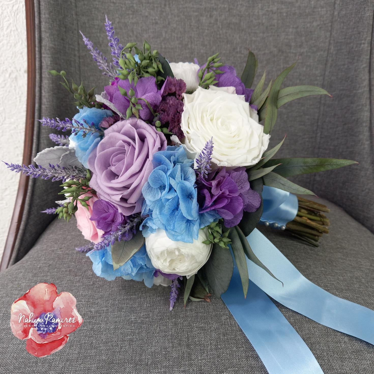 Ramo rehidratado en azul, lila y blanco